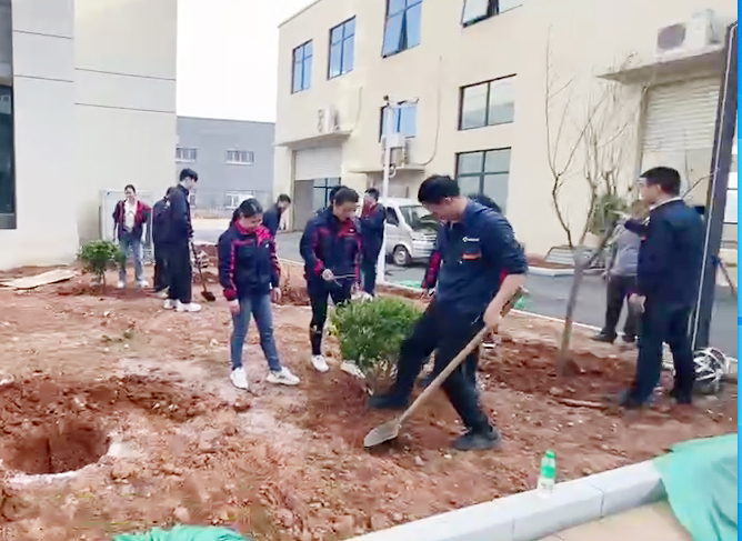 春回大地万物苏,植树播绿正当时。为了进一步增强职工爱绿护绿的意识,3月10日,和惠公司在公司园区开展植树活动,迎接第45个植树节的到来。植树现场,公司总经理赵文新等班子成员,和职工相互配合,挥锄填土、拎桶浇水,现场一片热火朝天的景象。经过大家的辛勤劳动,新栽种的绿植“安家落户”,迎风挺立,吐露春意,为公司园区增添了无限生机。